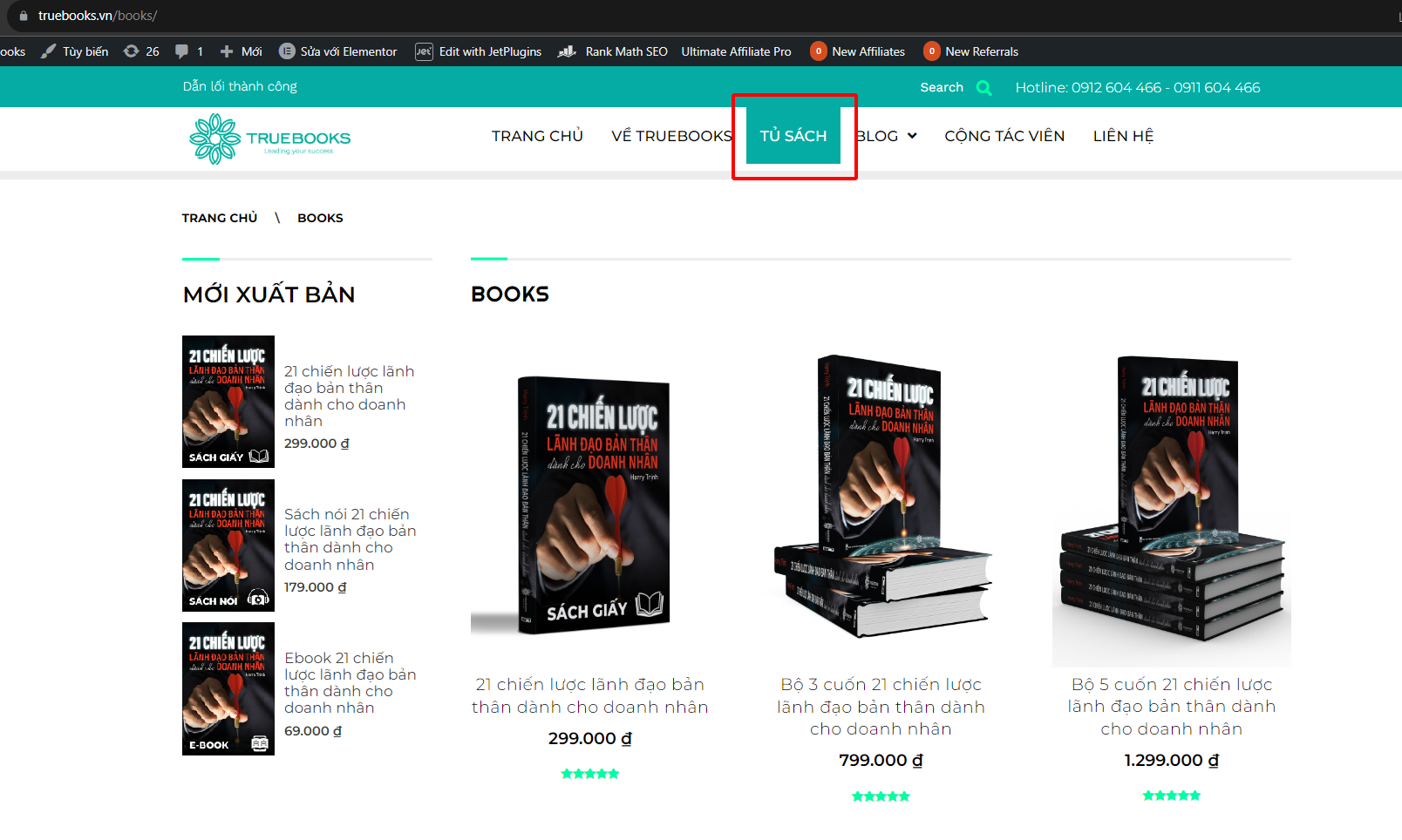 Cách 1: Gọi điện thoại đến tổng đài 0912.604.466 – 0911.604.466 từ 08:00 – 21:30 hàng ngày (cả CN & ngày lễ), nhân viên True Books luôn sẵn sàng phục vụ.