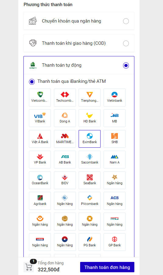 - Thanh toán tự động qua IBanking/ATM/Visa/MasterCard